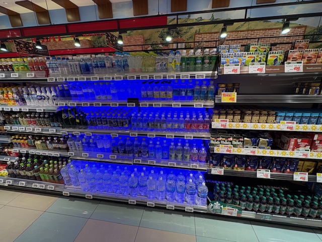 青色のライトで照らされた演出により、視覚的に惹きつけられる工夫ですね!商品は